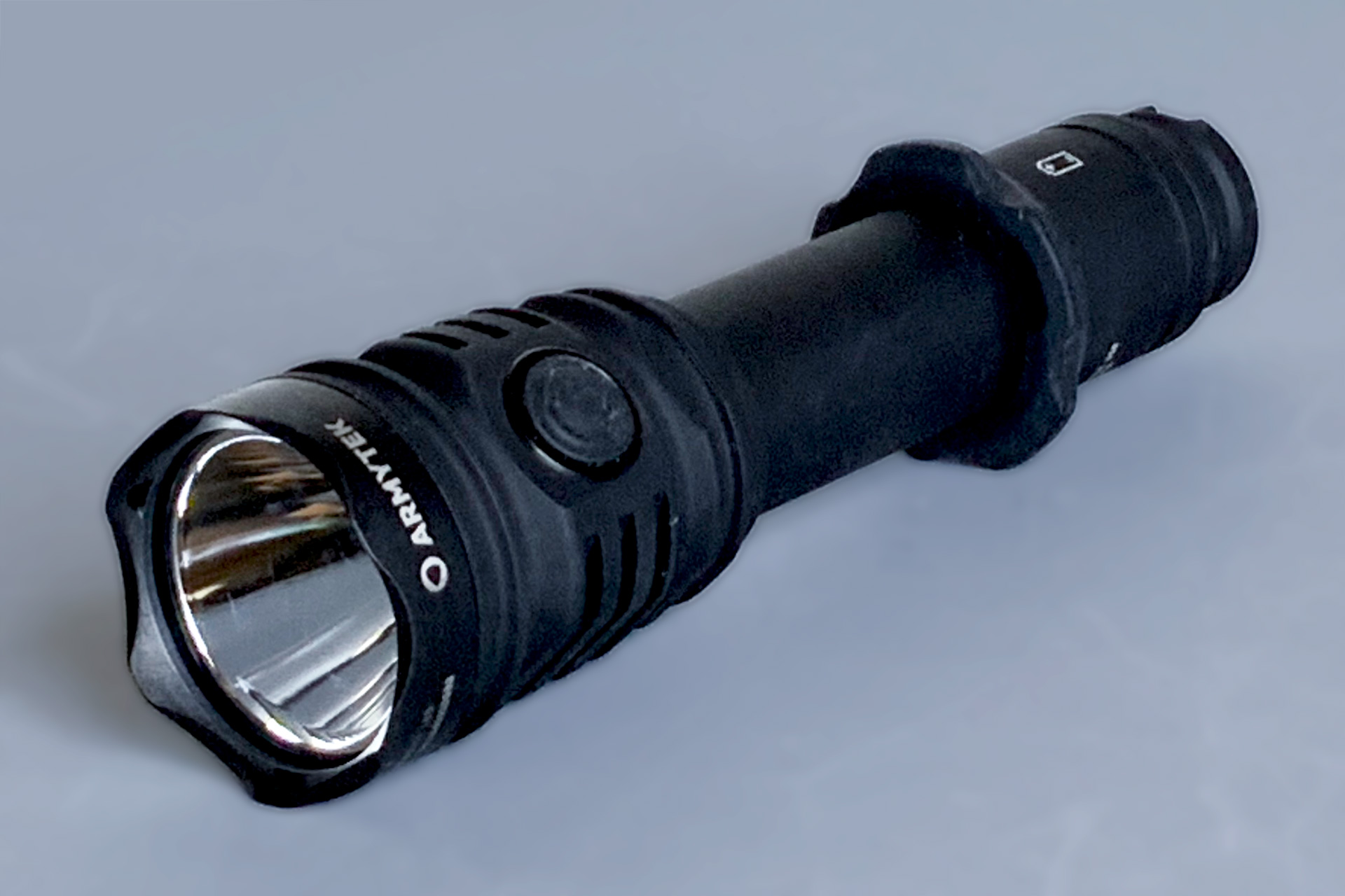 電源のオン/オフ: タクティカルボタンを「カチッ」と音がするまで完全に押し込むとライトが点灯します。